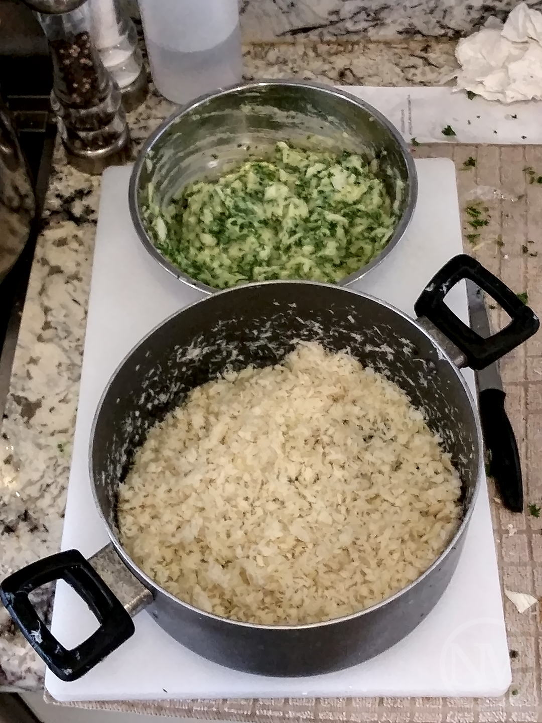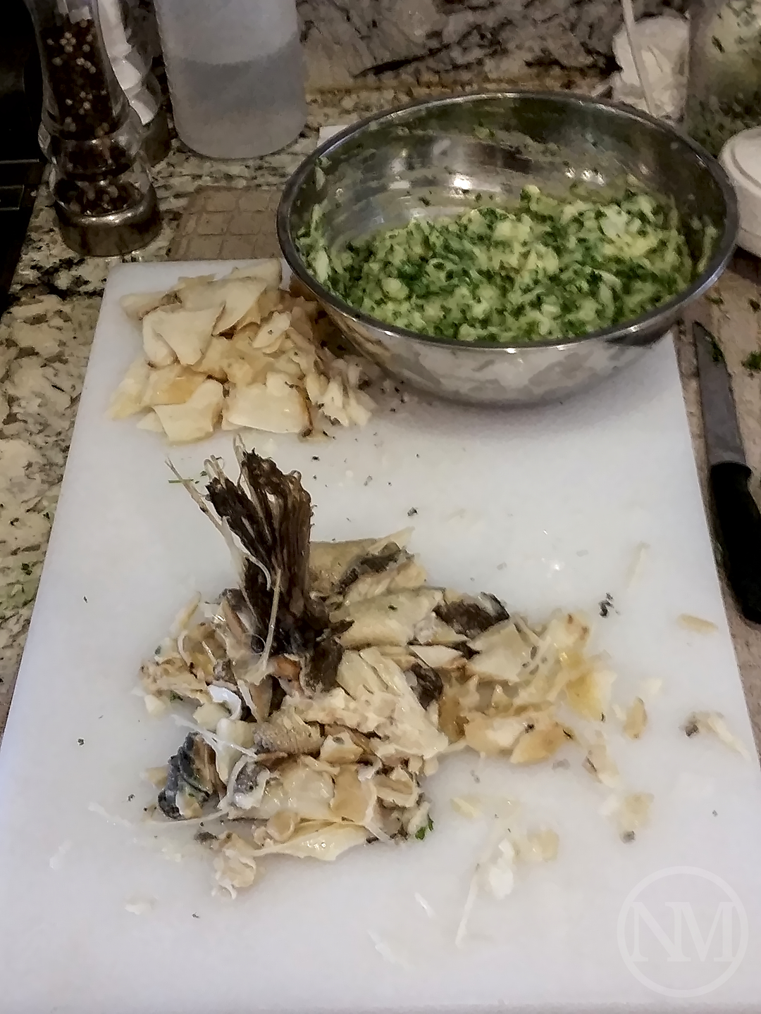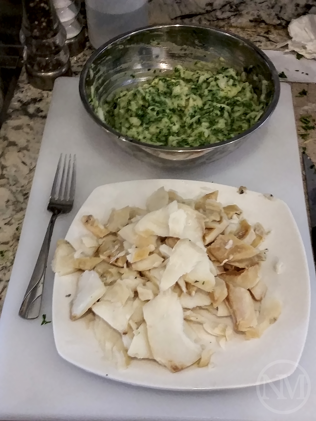 Soak the salt cod in water for at least 24 hours, changing the water 2 to 3 times.(1) Boil the potatoes with the skin for about 30 to 40 minutes. Remove them from the pot, let cool, then peel them. Mash the potatoes any way you want, I typically just use a fork.(2) Remove the cod from the soaking water.